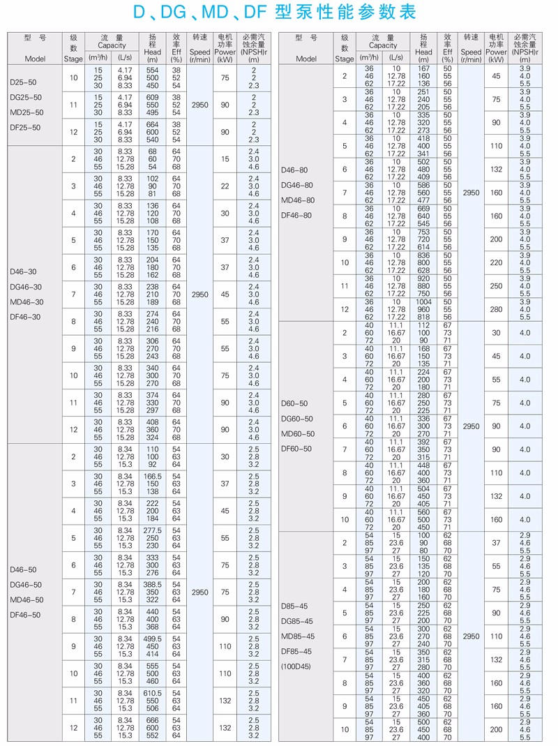 DG型高吸程單吸多級(jí)熱水離心泵供輸送清水或物理及化學(xué)性質(zhì)類似于清水的其他液體之用。介質(zhì)溫度不大于105℃,適用于小型鍋爐給水或輸送熱水和類似熱水的介質(zhì)。也可根據(jù)用戶要求制作介質(zhì)溫度不大于150℃場(chǎng)合。